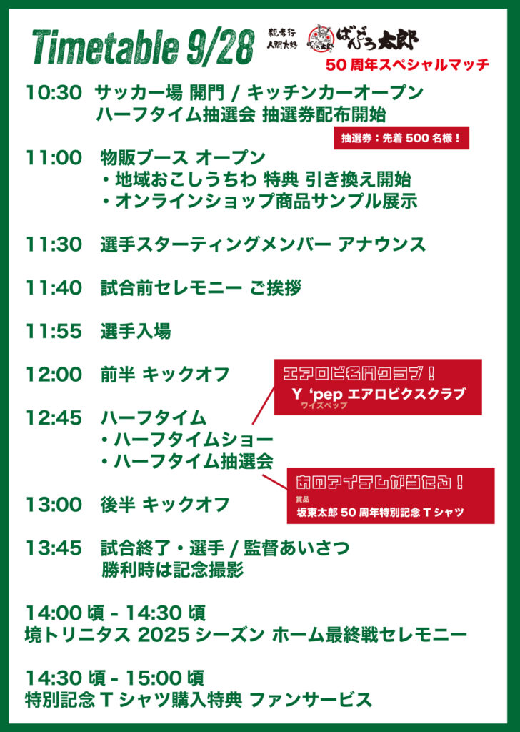 【試合情報】9/28(日) HOME:鹿島さわやかFC戦<ばんどう太郎50周年スペシャルマッチ>