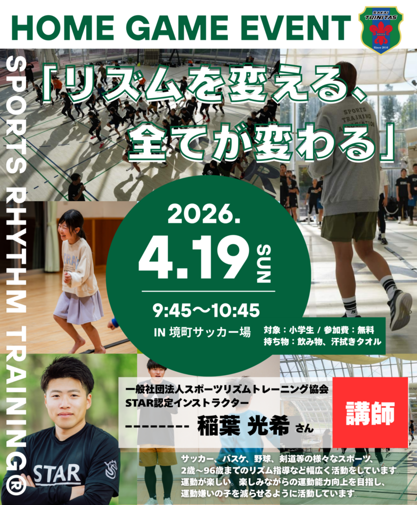 【試合前】:サッカー場で「スポーツリズムトレーニング」開催!!(雨天の場合中止)
