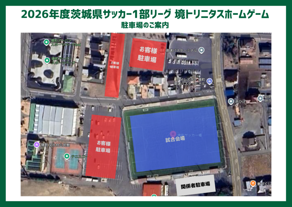 ・境町サッカー場 南側は関係者駐車場(選手・スタッフ等)となります。