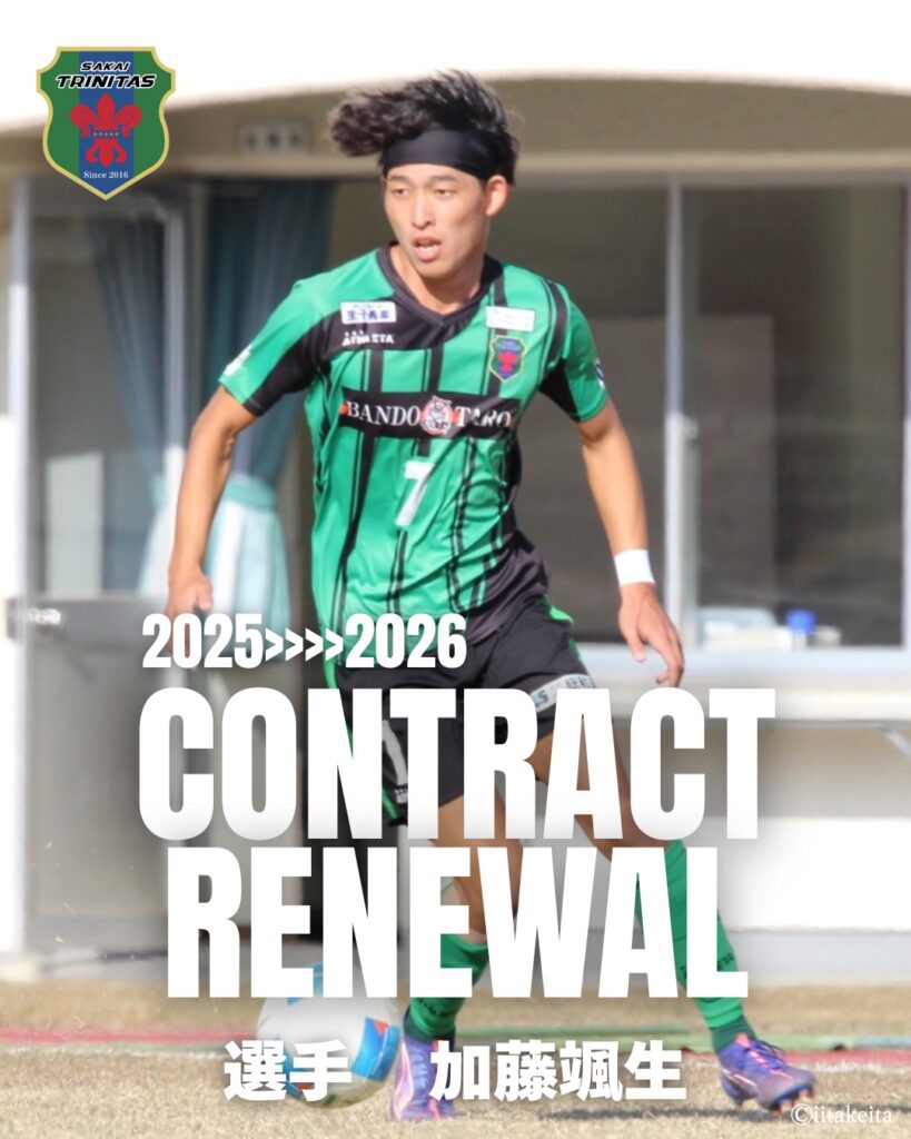 【TOP】加藤 颯生 選手 契約更新のお知らせ