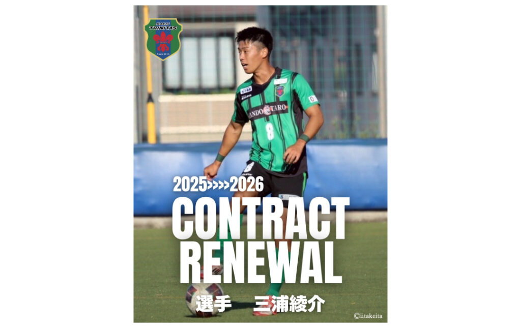 【TOP】三浦 綾介 選手 契約更新のお知らせ