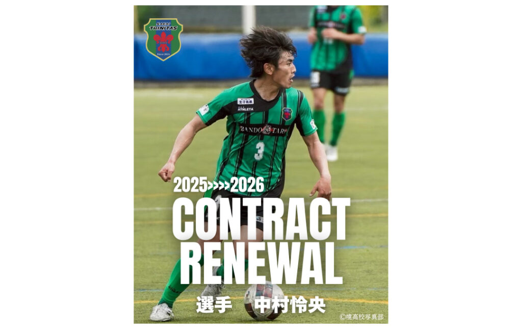 この度、境トリニタストップチームに所属する 中村 怜央 選手 と契約を更新しましたのでお知らせいたします。