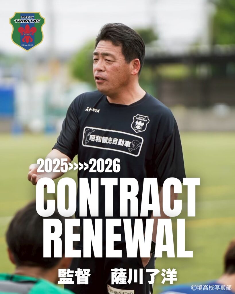 この度、薩川了洋監督と契約を更新し、来季も境トリニタストップチームの指揮を執ることが決定いたしました。