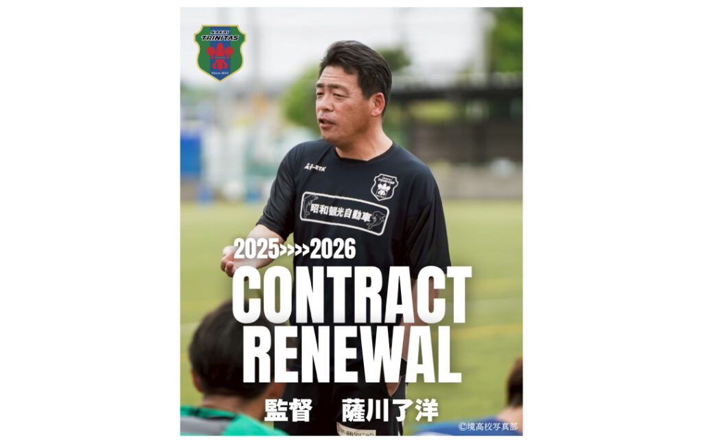 【TOP】薩川了洋 監督 契約更新のお知らせ