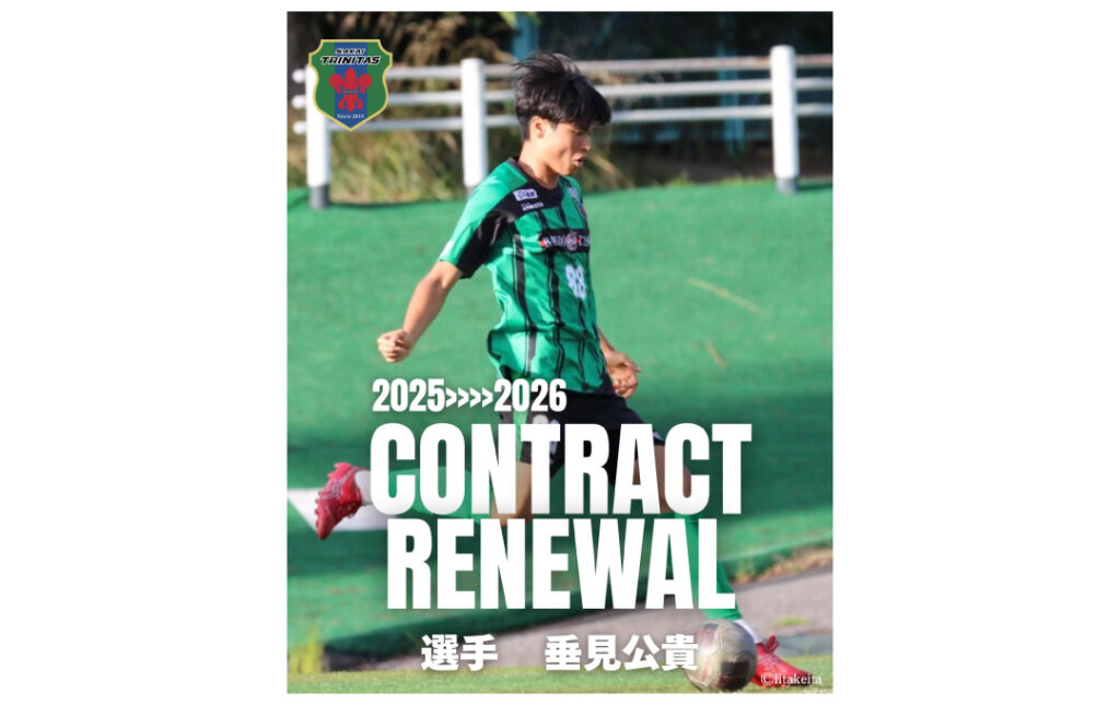 ホーム ニュース 【TOP】垂見 公貴 選手 契約更新のお知らせ