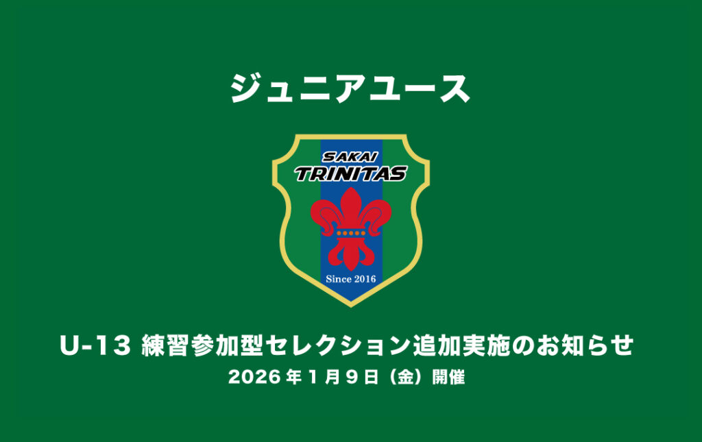 【ジュニアユース】U-13 練習参加型 セレクション追加実施のお知らせ